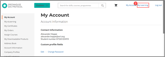 1. Log in to the site with your account email and password. In the top menu bar click My Learning.