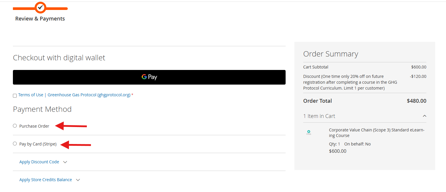 GHG Protocol's courses are available for online purchase. For the best experience, use Google Chrome or another modern browser to access the GHG Protocol Learning Management System. You can purchase the courses for yourself or for colleagues. See below for details on purchasing and access.