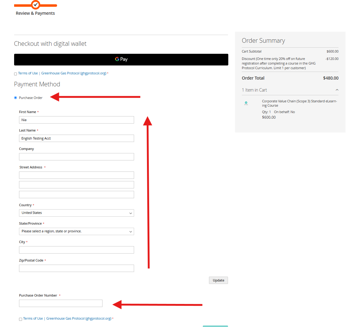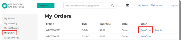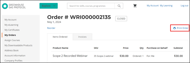 If you have placed a purchase order by mistake or need to update the order contact the E-Learning team for support. The Greenhouse Gas Protocol team reviews each purchase order before sending invoices for payment.