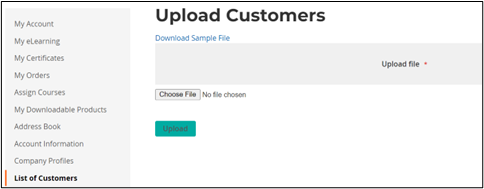 5. Click Download Sample File to download the upload template. You must fill out the template with your colleagues’ first names, last names, email addresses and company name in the system.